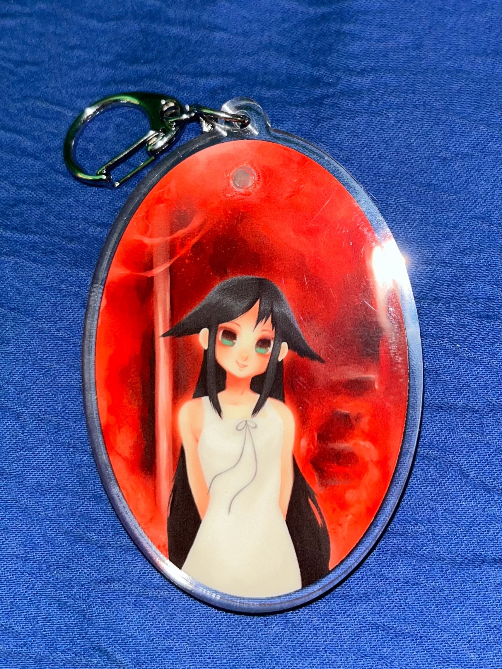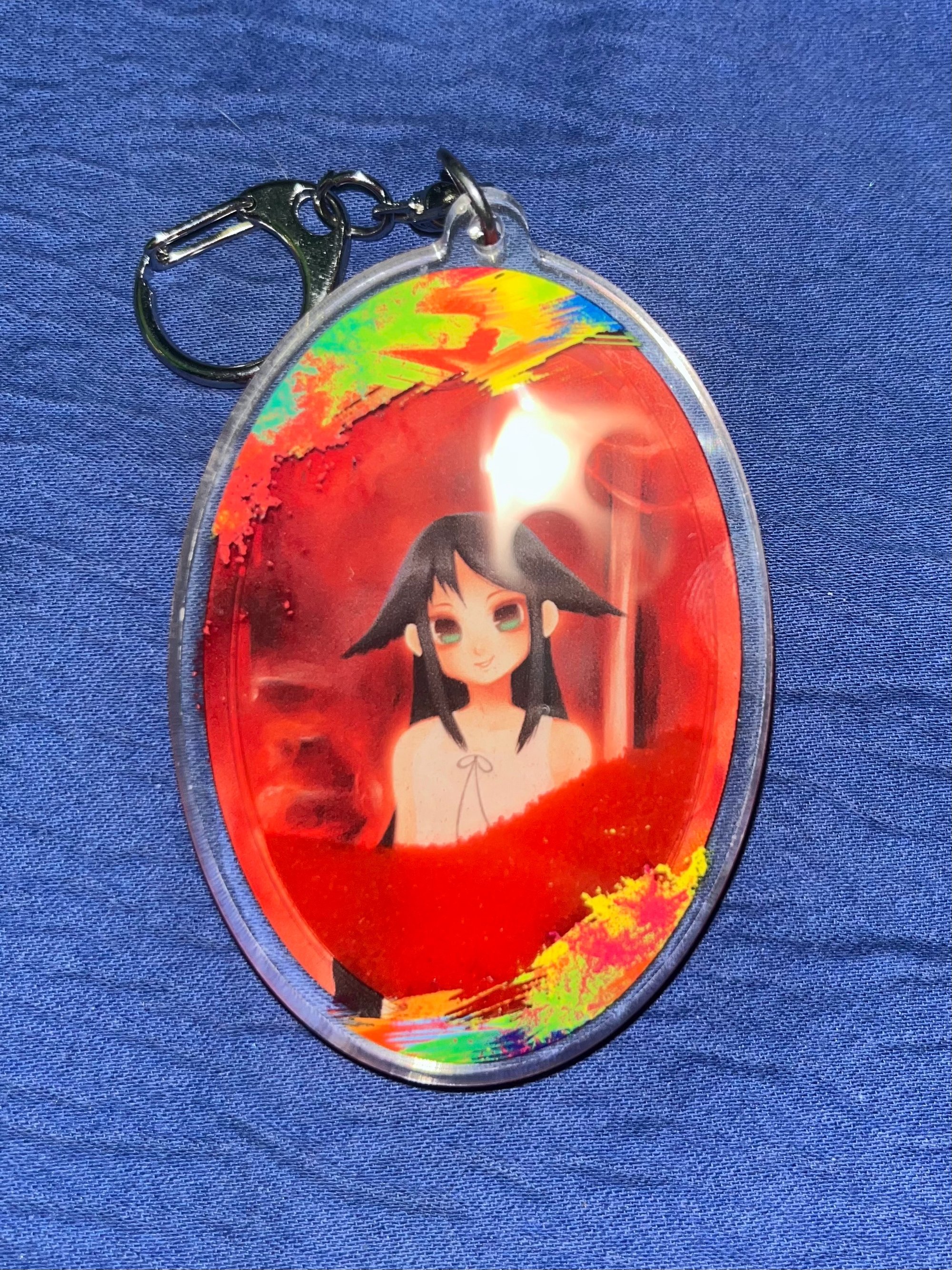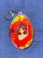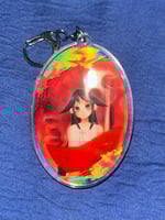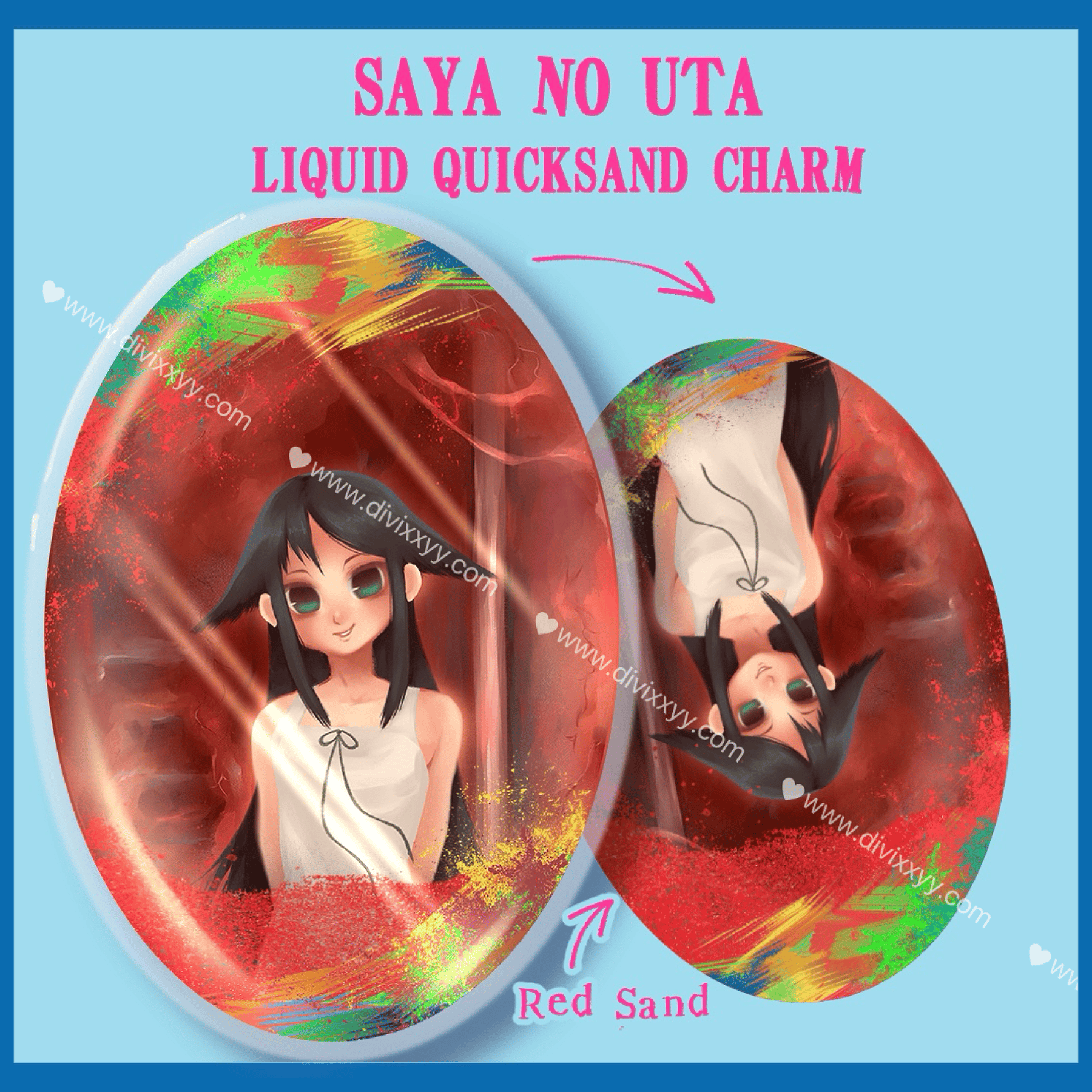 A 3" liquid quicksand charm featuring Saya from Saya No Uta. It has red glitter inside.